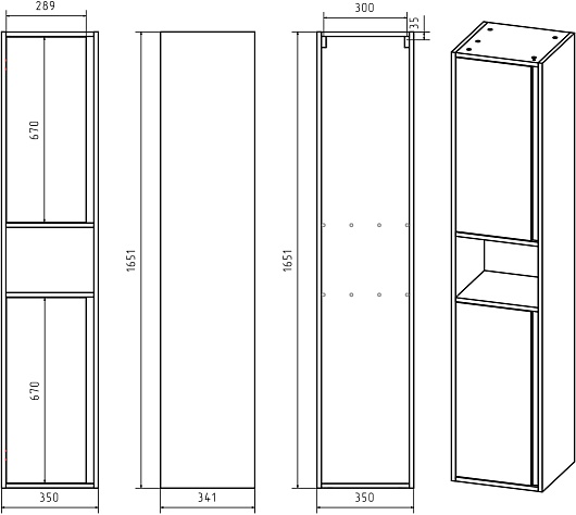 Шкаф пенал Misty Кама 35 универсальный - арт. П-Кам05035-31.