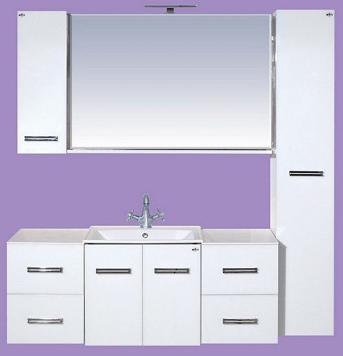 Комплектация: подвесная тумба для ванной с выдвижными ящиками, столешница из искусственного мрамора. Хромированные ручки, крепления, с механизмом доводчиков.