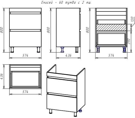 В комплекте: тумба, раковина, ножка (4 шт.), комплект креплений.