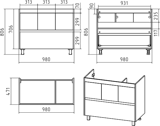 Misty Тумба для умывальника Алиса 100, 1 ящик, напольная