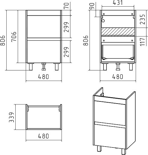 Misty Тумба для умывальника Алиса 50, 1 ящик, напольная