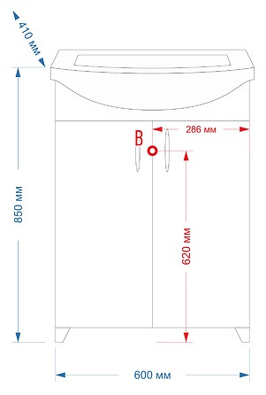 - тумба под раковину: 2 распашные дверцы, 2 металлические ручки, крепления и опорные ножки