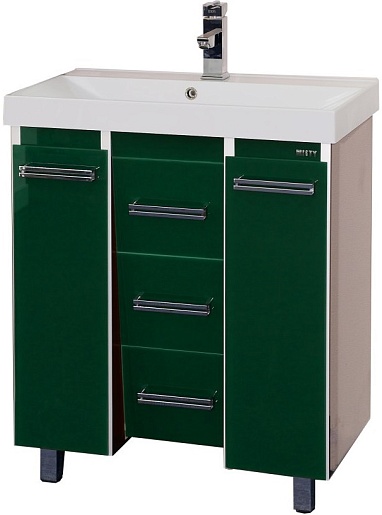 Misty Тумба для умывальника Джулия QVATRO конус 75, 3 ящика, зеленая