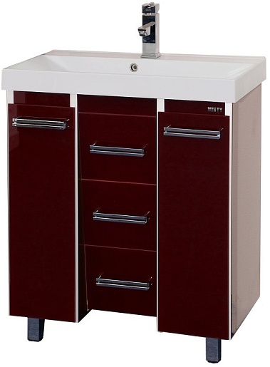 Misty Тумба для умывальника Джулия QVATRO конус 90, 3 ящика, бордо