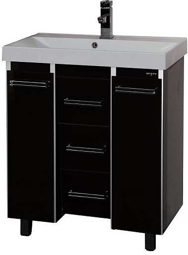 Misty Тумба для умывальника Джулия QVATRO конус 90, 3 ящика, черная