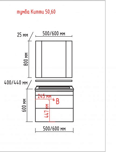 - тумба под раковину подвесная: 2 выдвижных ящика, ручки, крепления, доводчики