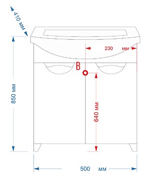 - тумба под раковину: 2 распашные дверцы, 2 врезные металлические ручки, крепления и опорные ножки
