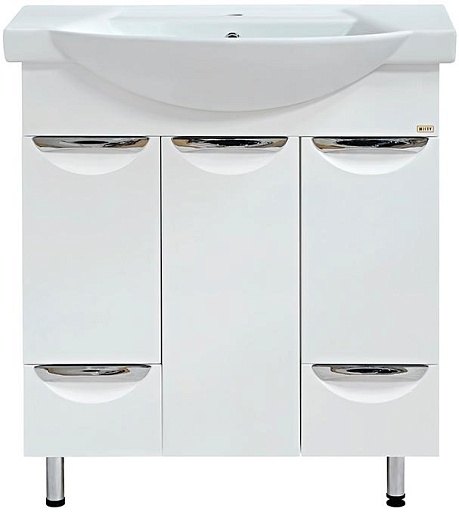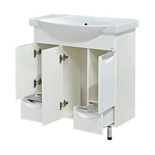 - тумба под раковину: 3 распашные дверцы, 2 выдвижных ящика, 5 врезных металлические ручки, крепления и опорные ножки