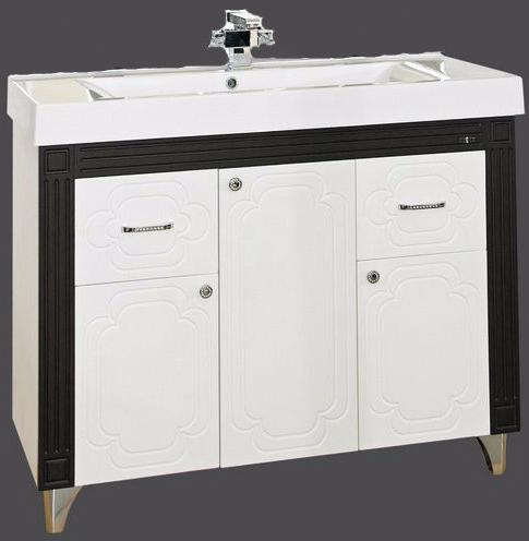 - тумба под раковину: 3 распашных дверцы, 2 выдвижных ящика, 5 металлических ручки с кристаллами, комплект опорных ножек и крепления