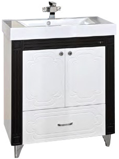- тумба под раковину: 2 распашных дверцы, 1 выдвижной ящик, 3 металлических ручки с кристаллами, комплект опорных ножек и крепления