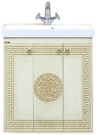 - тумба под раковину: 3 распашные дверцы, 3 золотистые ручки с кристаллами