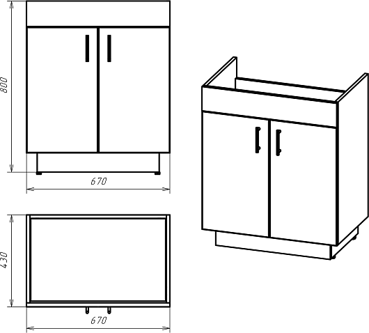 - 2 распашные дверцы.