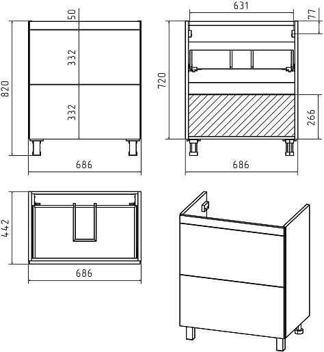 В комплекте: тумба, ножка (4 шт.), комплект креплений.