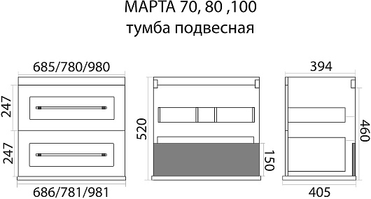 - 2 выдвижных ящика.