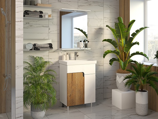Тумба под раковину Misty Примула 60 дуб вотан/белая - арт. О-При06-060-019.