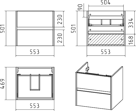 Тумба для умывальника Алиса 58, 2 ящика, подвесная