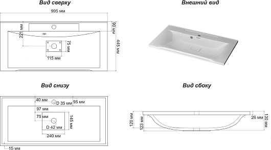 В комплекте: тумба, раковина, ножка (4 шт.), подвесы (2 шт.).