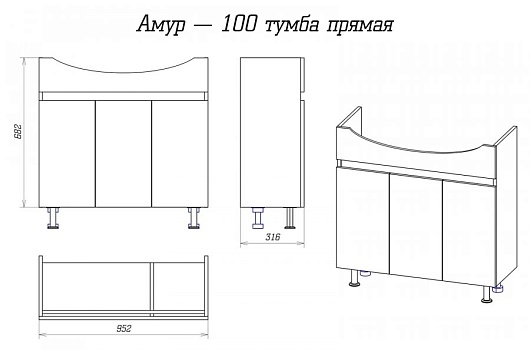 Амур 100 тумба напольная, три распашных фасада, регулируемые опоры