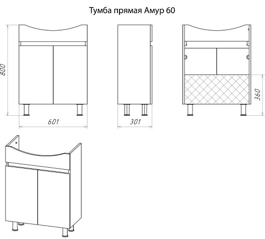 Тумба для умывальника Амур 60 прямая