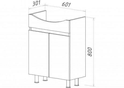 Амур 60 тумба напольная, два распашных фасада, регулируемые опоры