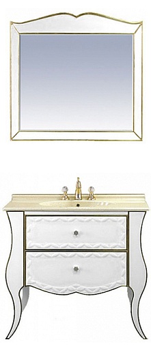 Misty Тумба с раковиной "Анжелика 100" белая сусальное золото