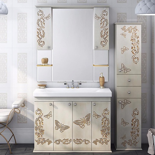 Тумба для умывальника Бабочка 120 бежевая патина