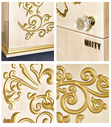 - тумба под раковину: 3 распашные дверцы, золотистые ручки с кристаллом.