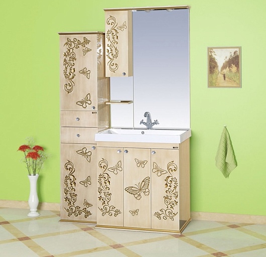 Тумба для умывальника Бабочка 90 бежевая патина