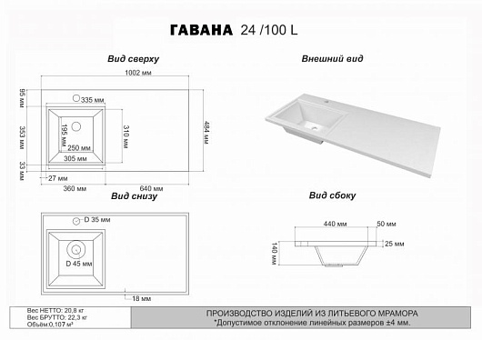 В комплекте: тумба, раковина, ножка (4 шт.), комплект креплений.