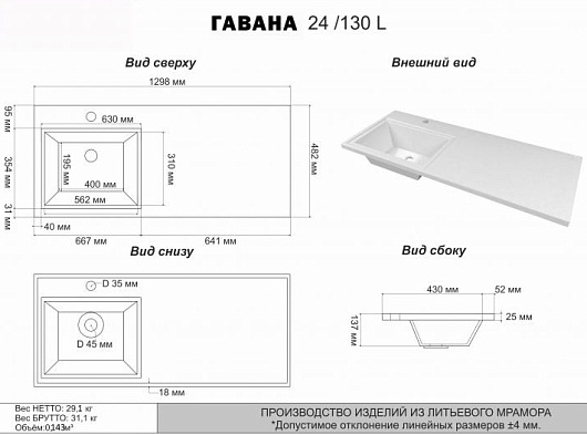 В комплекте: тумба, раковина, ножка (4 шт.), комплект креплений.