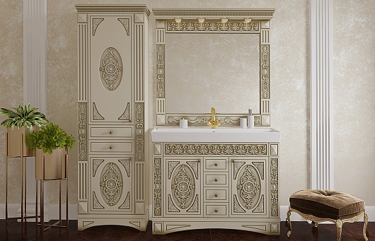 - тумба под раковину Misty Беатрис 120 бежевая патина: ручка с кристаллами - 2 шт., распашная дверца - 2 шт., выдвижной ящик - 4 шт., доводчики, резной декор