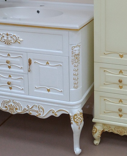 Тумба для умывальника Bianco 100 белая сусальное золото