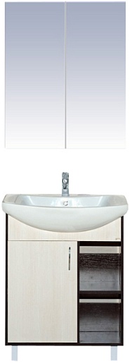- тумба под раковину: распашная дверца, открытые полки, металлическая ручка, крепления и опорные ножки