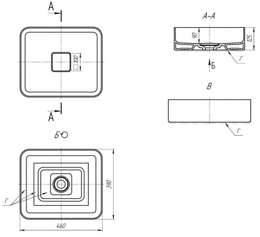 - Поставляется без отверстий, что даёт возможность самостоятельно выбрать удобное для себя расположение раковины.
