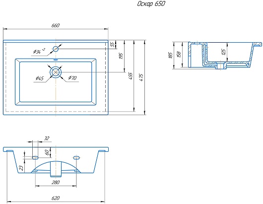 Тумба с раковиной Misty Дива 65 - арт. П-Див01065-013Пр / 4640021062203.