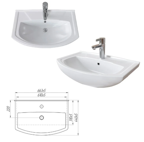 - раковина DELLA "MIA"/"DIY" 65, фаянс, цвет белый