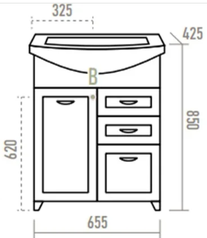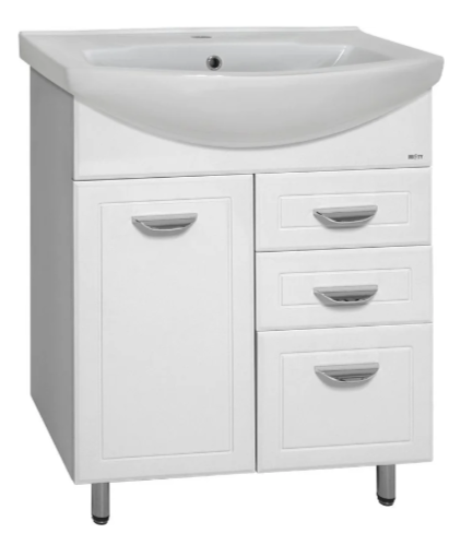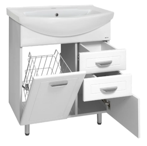 - тумба под раковину Misty Дрея 65 с 2 ящиками: выдвижной ящик - 2 шт., ручка - 4 шт., распашная дверца - 1 шт., корзина для белья - 1 шт.