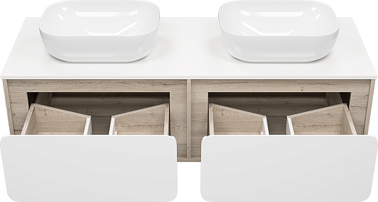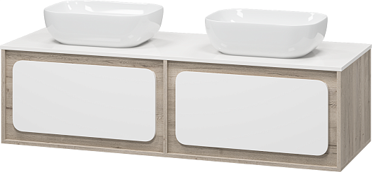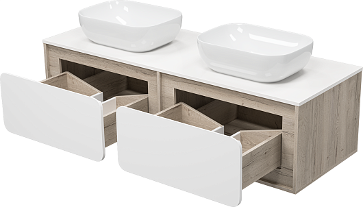 Тумба под раковину Дубль 150 подвесная дуб галифакс/белая