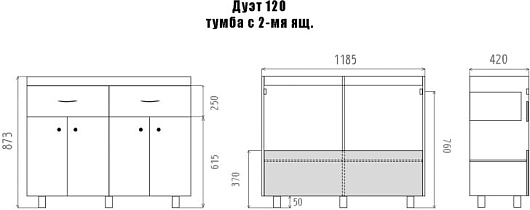 Тумба под раковину Дуэт 120 2 ящика белая