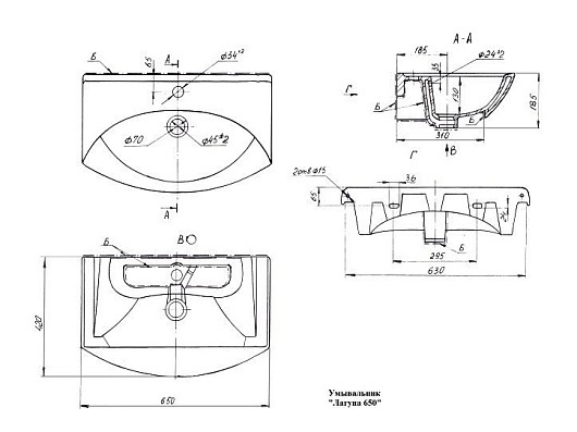 - раковина Дрея "Лагуна 65", фаянс, цвет белый