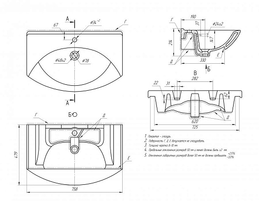 - раковина Дрея Лагуна 75, фаянс, цвет белый