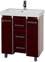 Misty Тумба с раковиной Джулия QVATRO 75 конус, 3 ящика, бордо