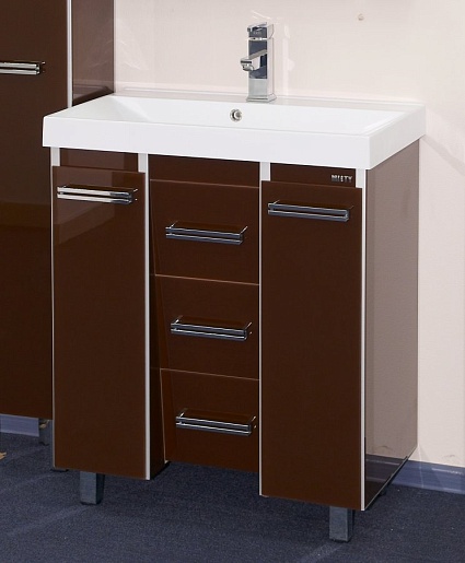 Misty Тумба с раковиной Джулия QVATRO 75 конус, 3 ящика, коричневый