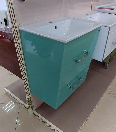 Тумба для умывальника Джулия QVATRO 75 подвесная конус голубая