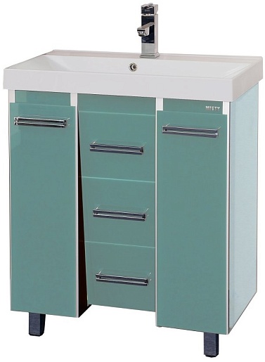 Misty Тумба с раковиной Джулия QVATRO 90 конус, 3 ящика, голубая