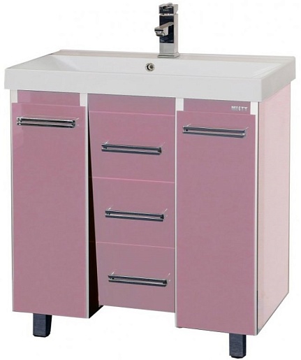 Misty Тумба с раковиной Джулия QVATRO 90 конус, 3 ящика, розовая
