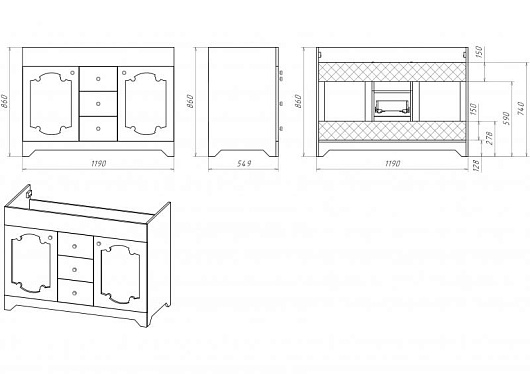 - тумба под раковину Элис 120, арт. Л-Эли01120-0133Я: распашная дверца - 2 шт., ящики