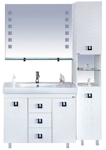 - тумба под раковину: 2 распашные дверцы, 3 выдвижных ящика, 5 металлических ручек, комплект опорных ножек и крепления