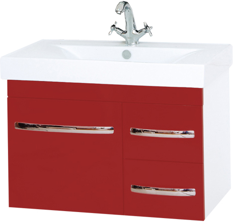 Misty Тумба с раковиной Эмилия 75 подвесная красная