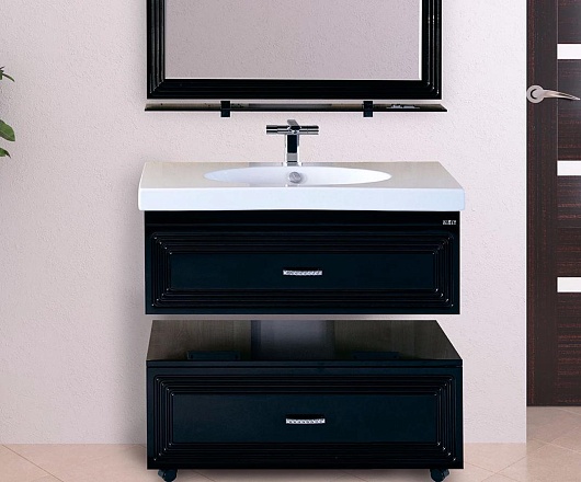 - тумба под раковину: выдвижной ящик, хромированные ручки инкрустированные кристаллами, крепления, доводчики.